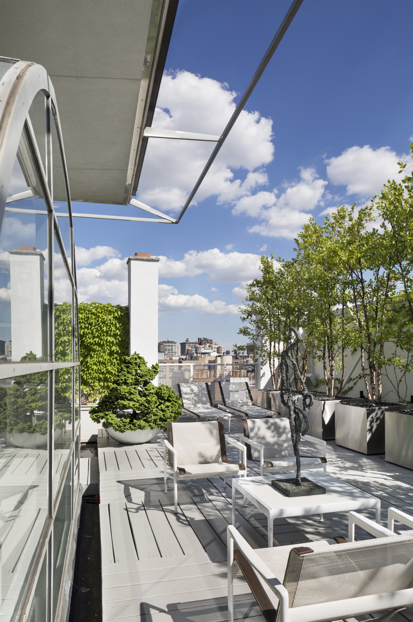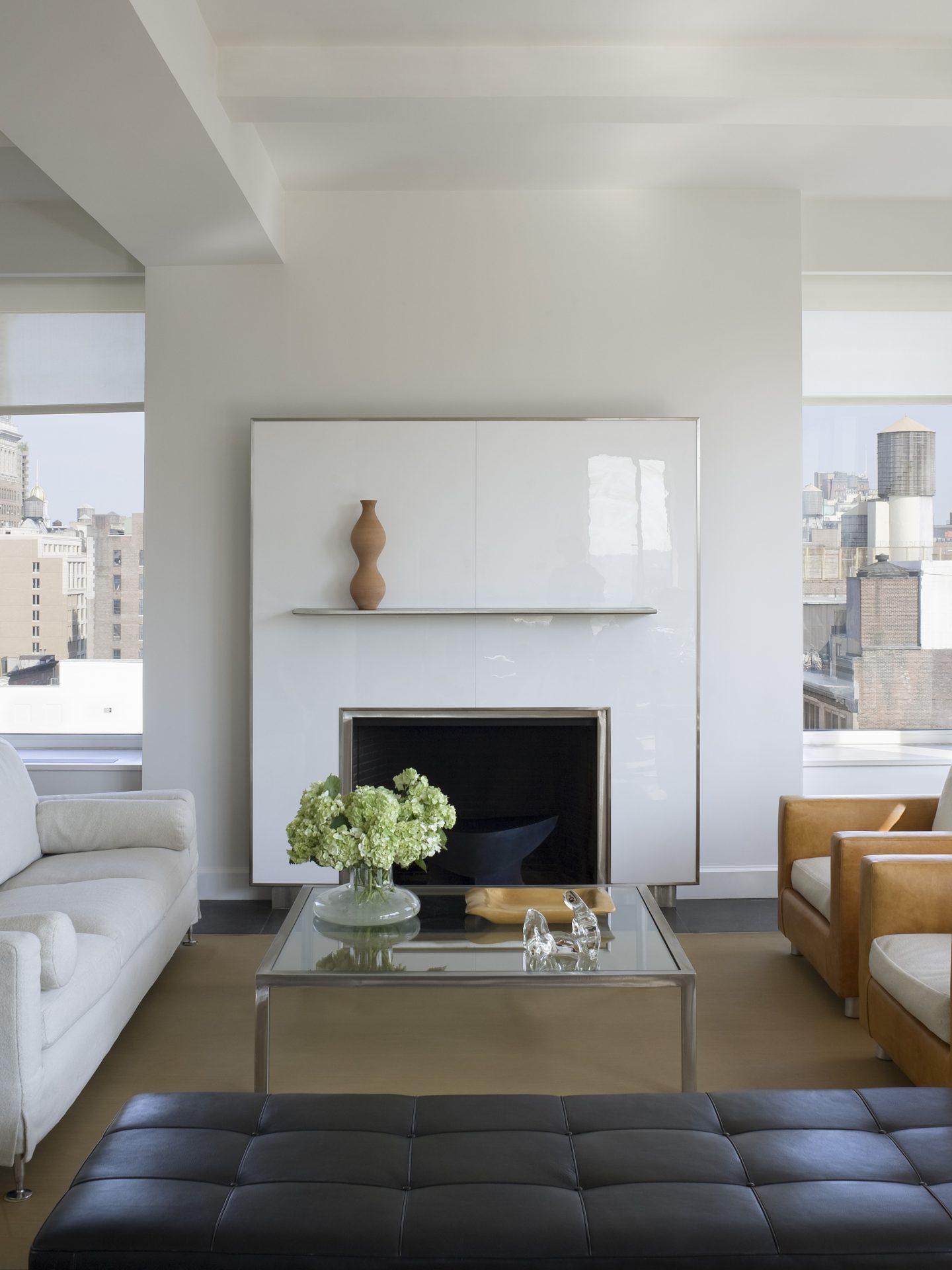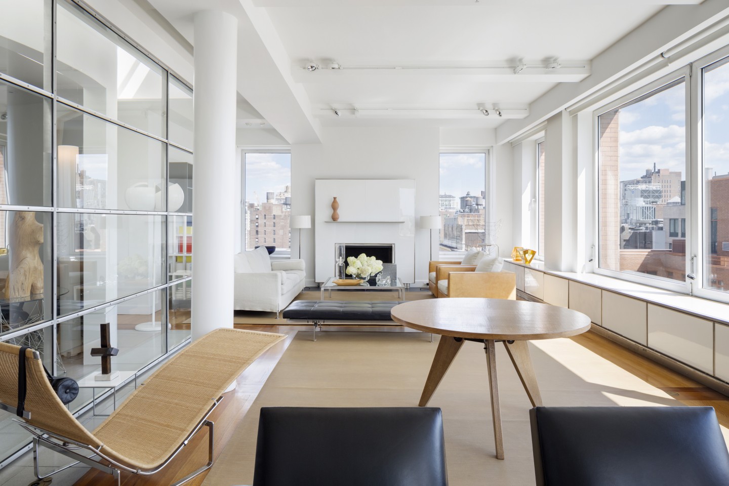 On the edge of Manhattan’s Flatiron and Chelsea districts, this 12th floor and rooftop space offered the potential of four exposures. Large-scale fenestration was cut into all four facades as well as the foot to incorporate vistas from the Hudson to the East Rivers and from the Statue of Liberty to the Empire State Building.