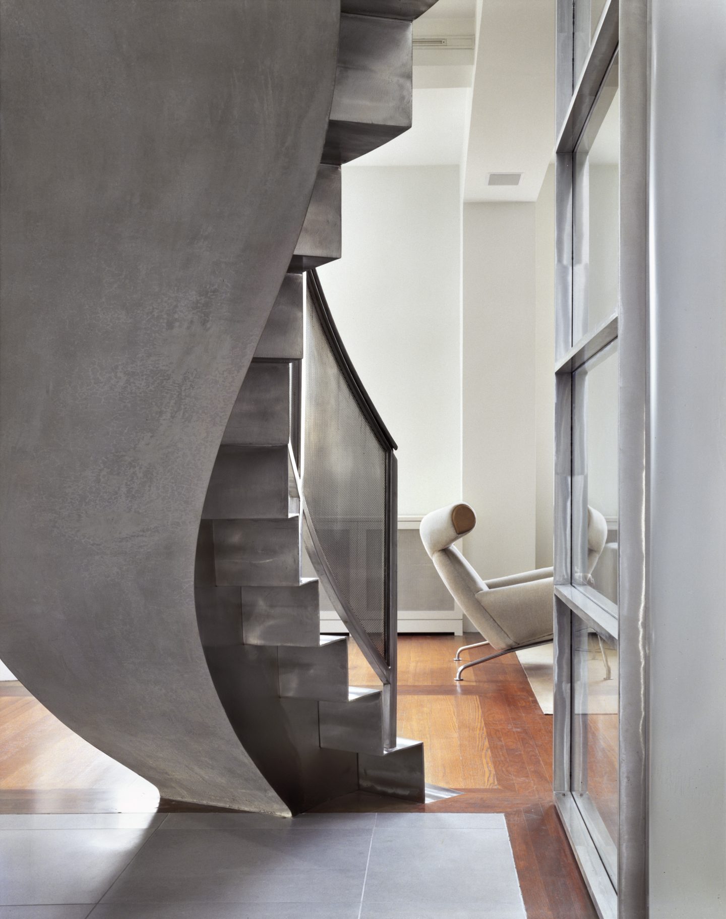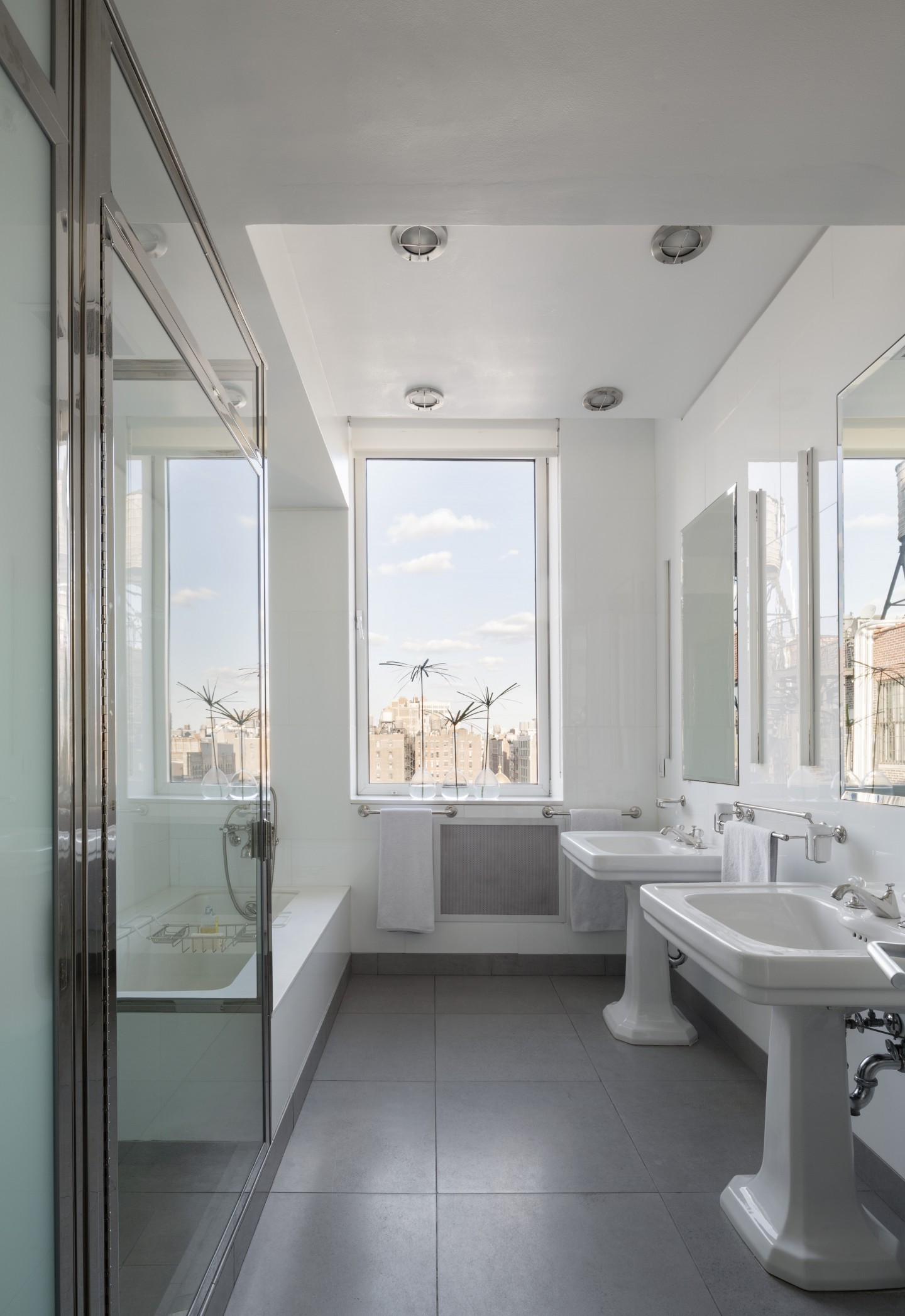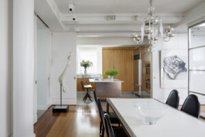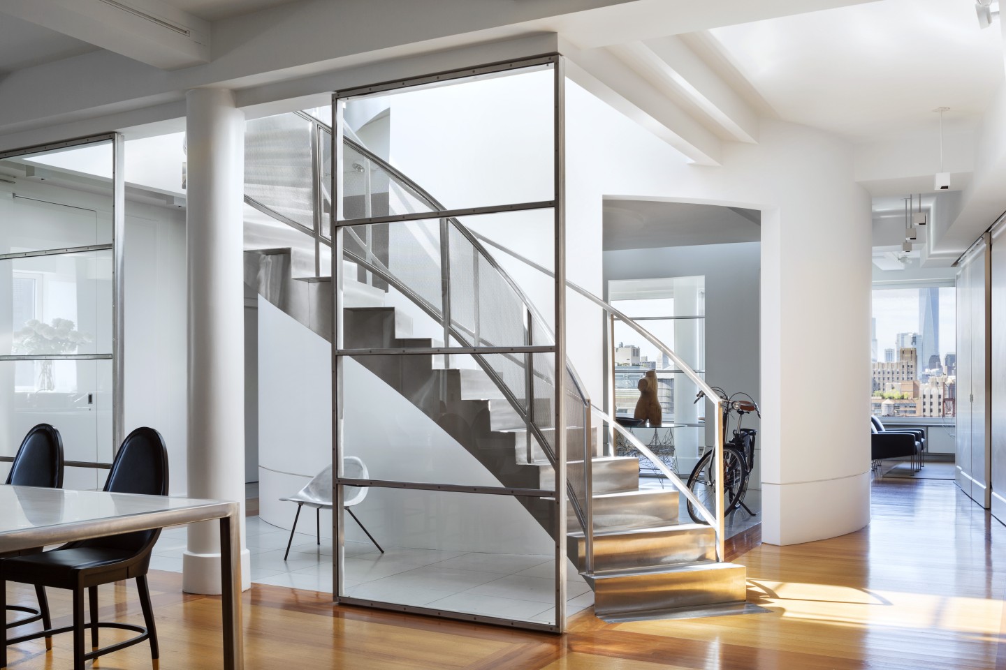 On the edge of Manhattan’s Flatiron and Chelsea districts, this 12th floor and rooftop space offered the potential of four exposures. Large-scale fenestration was cut into all four facades as well as the foot to incorporate vistas from the Hudson to the East Rivers and from the Statue of Liberty to the Empire State Building.