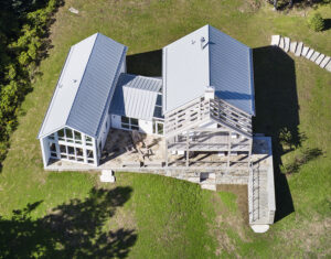 The orientation of the freestanding addition is a choreographed dance with the ocean waves, where each angle celebrates the ever-changing panorama. With a deliberate design ethos, the structure unfolds to welcome the boundless horizon, inviting the ocean breeze to intertwine with the warmth of home. Large, panoramic windows serve as portals to nature’s spectacle, blurring the boundaries between indoor comfort and the untamed beauty of the sea.