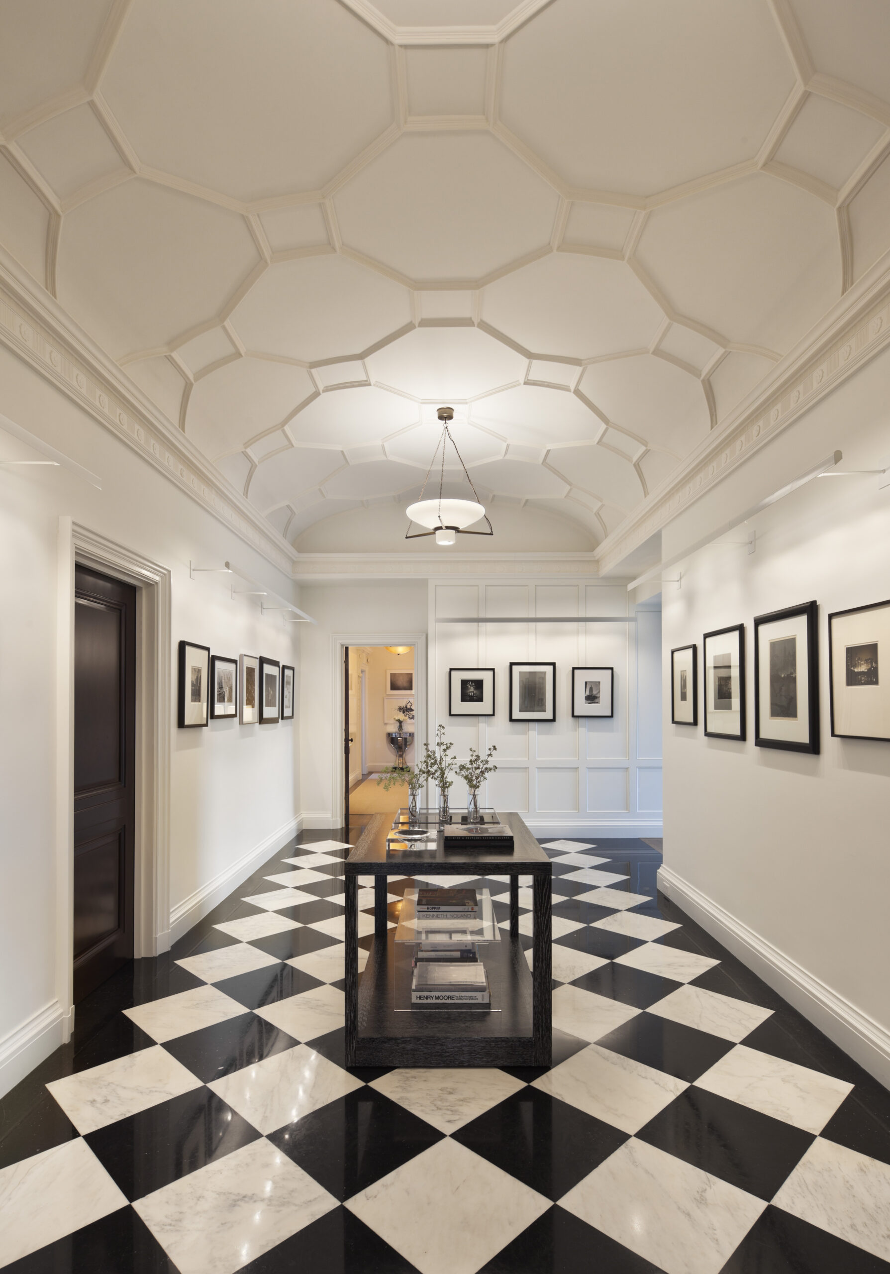 In this nearly gut renovation; it was key to find a methodology to bring it’s past forward, yet acknowledge the changes of modern life without a slavish restoration. The solution required quite drastic measures including; bold architectural reorganization of the spaces, opening up the plan, bringing light into dark spaces and creating spaces that did not exist. A new vaulted tracery ceiling and gallery were recycled pieces of the old black and white entry floor.